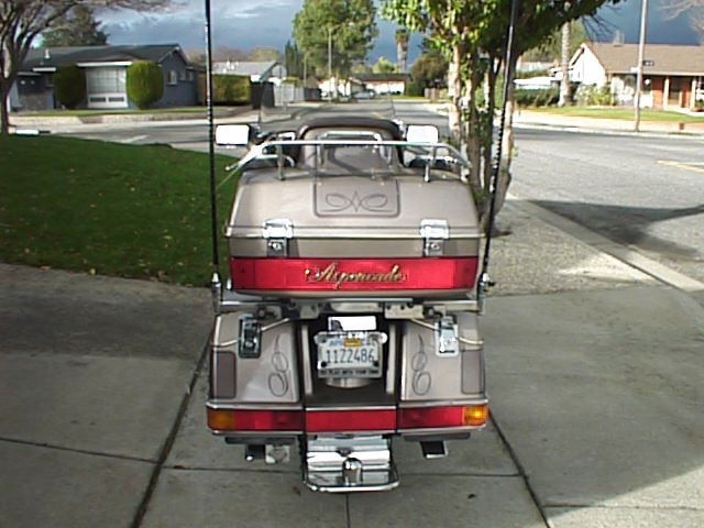 A view from the rear. Markland Tow Hitch, Rear reflector changed to light, chrome trunk accents, Trunk Rack